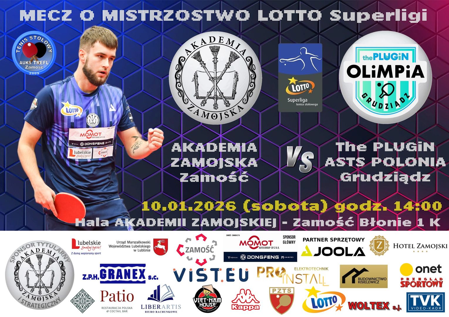W meczu 12 kolejki LOTTO Superligi w zdecydowanym faworytem była drużyna gości. Nasi zawodnicy jednak kolejny raz pokazali charakter i że w Zamościu "wszystko się może zdarzyć" Tak było i tym razem, goście wygrywali już 2:0 co nie było dziwne, jednak nasz zespół wspiął się na wyżyny swoich umiejętności, drużyna pokazała charakter i doprowadziła do remisu 2:2. Swoje mecze wygrali Amirreza Abbasi i Jakub Stecyszyn. W ostatnim starciu Janek musiał uznać wyższość zawodnika z Korei Cho Sengmina.