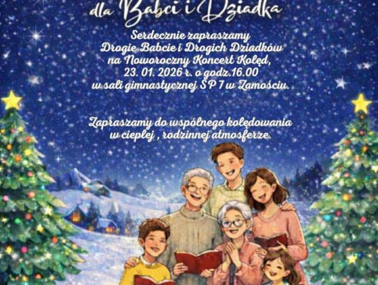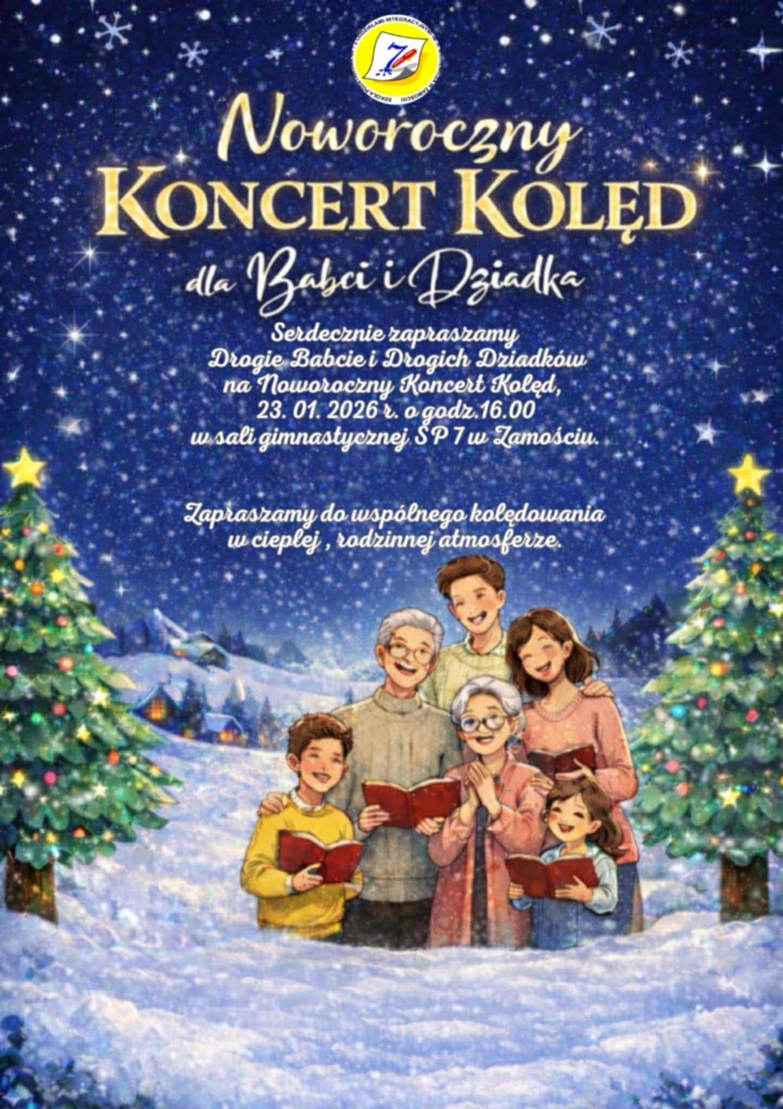 Szkoła Podstawowa nr 7 z Oddziałami Integracyjnymi im. Adama Mickiewicza w Zamościu zaprasza na uroczysty Noworoczny Koncert Kolęd.