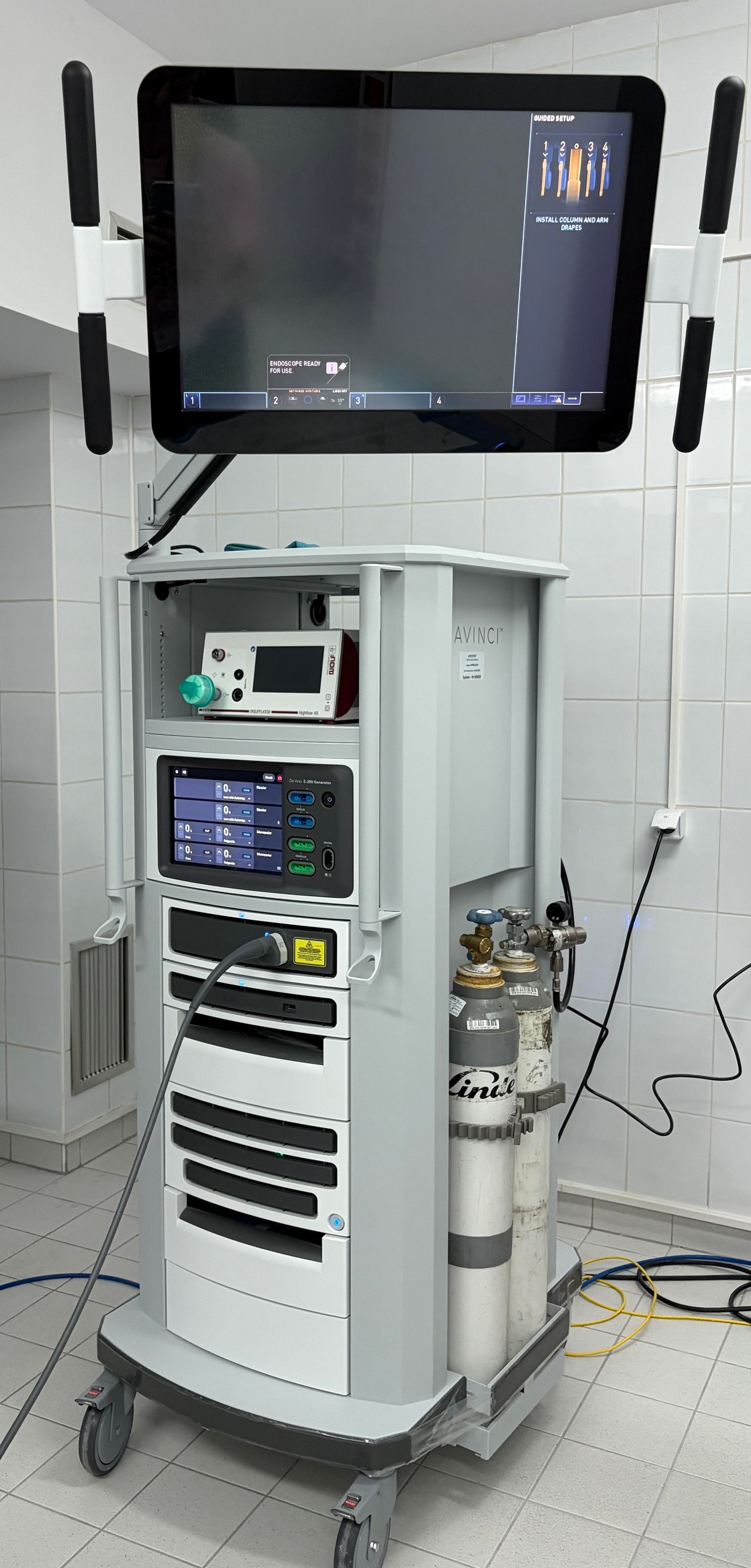 System Intuitive Surgical da Vinci Xi należy do najbardziej zaawansowanych technologii stosowanych we współczesnej chirurgii małoinwazyjnej. Umożliwia operatorowi wykonywanie niezwykle precyzyjnych ruchów narzędzi chirurgicznych, zapewnia wysokiej jakości obraz pola operacyjnego i wspiera przeprowadzanie skomplikowanych zabiegów z minimalną ingerencją w organizm pacjenta. System obejmuje konsolę operatora, wózek pacjenta z czterema ruchomymi ramionami oraz wózek wizyjny, a jego wartość wyniosła około 16 mln zł.